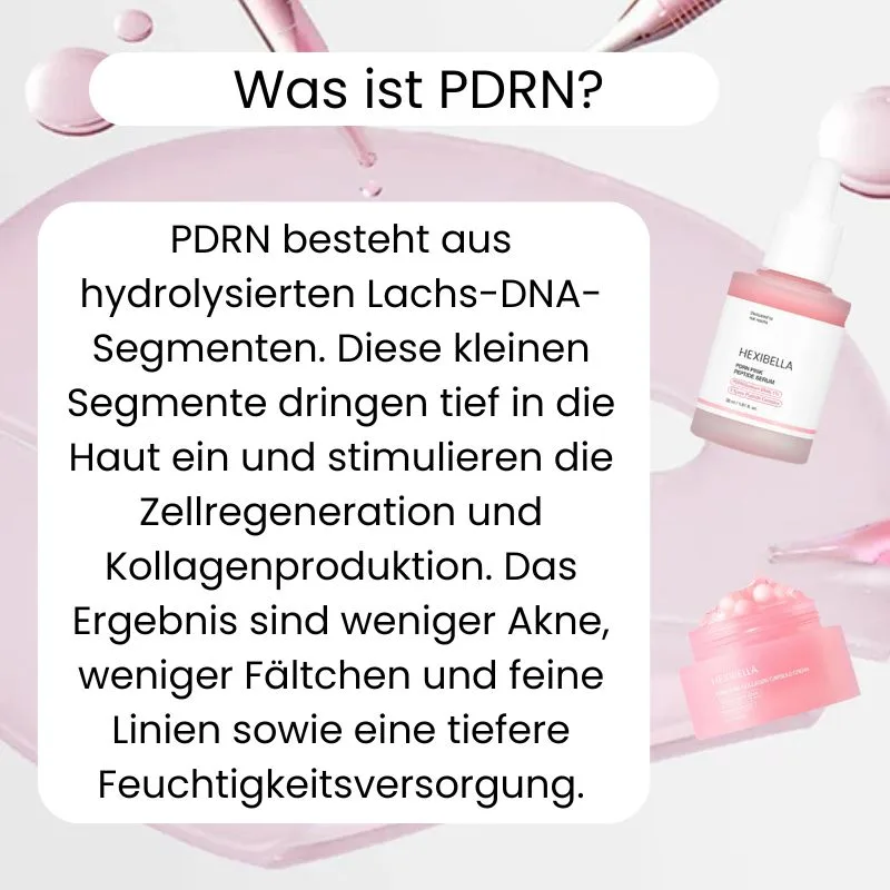 Retinol sorgt nur für die Produktion von Kollagen und Elastin und eignet sich nicht für empfindliche Haut. PDRN hingegen spendet Feuchtigkeit, verbessert die Textur, gleicht den Hautton aus und stimuliert die Kollagenproduktion, ohne den Alltag zu beeinträchtigen oder sich in der Sonne abzubauen wie Retinol. PDRN ist auch perfekt für empfindliche Haut geeignet!