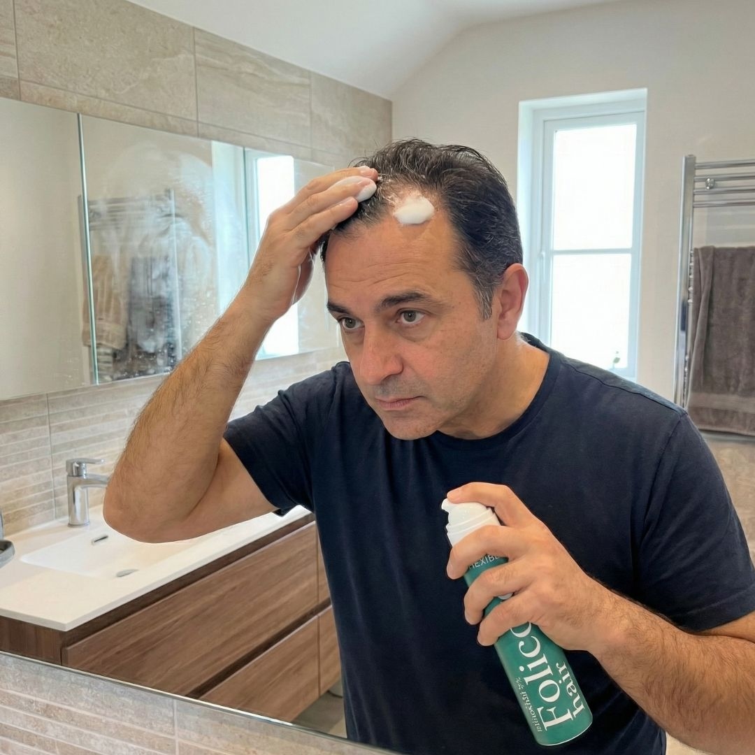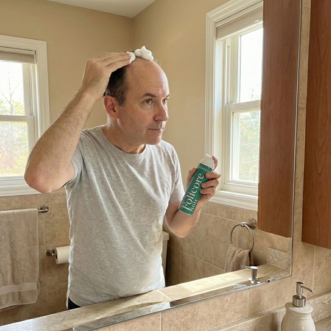 Folicore uses foam instead of liquid drops as liquid drops contain propylene glycol which dries out hair and causes scalp build up. The ethanol-based foam that Folicore uses is a smaller molecular weight which can carry the dissolved active ingredients deeper into the scalp for better absorption and faster results. Folicore also localizes the effects to the scalp unlike finasteride which is absorbed as a pill by the whole body.